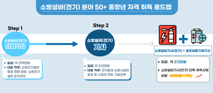 데이터 분석 대상은 2015년부터 10년간 중장년이 많이 취득한 산업안전기사, 소방설비기사(전기·기계), 건설안전기사, 전기기사 등 상위 5대 기사 자격을 중심으로 했다.