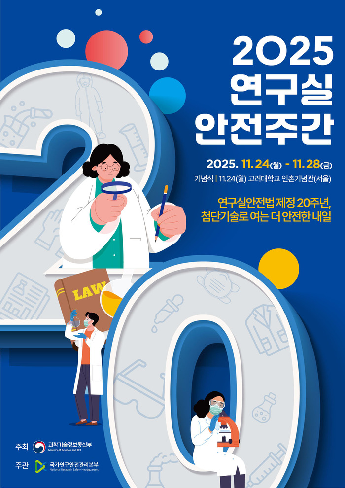 과학기술정보통신부가 11월 24일부터 28일까지 「2025연구실 안전 주간」을 진행하고 11월 24일 서울 고려대학교에서 안전 주간 기념식을 개최한다고 밝혔다.