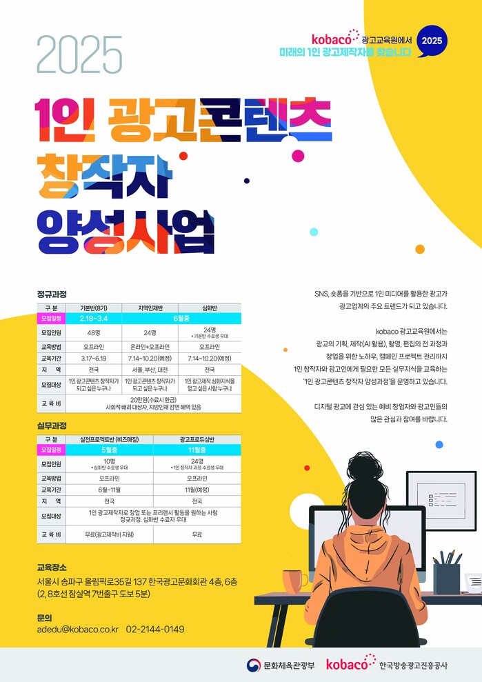 | ▲2025년 1인 광고콘텐츠 창작자 양성과정 모집 포스터 (사진=코바코) |