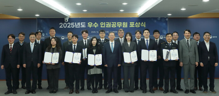 법무부가 8일 세계 인권의 날을 기념하여 2025년 한 해 법무행정 일선에서 인권 보호를 위해 남다른 노력을 한 검사 3명, 검찰수사관 3명, 교정공무원 4명, 출입국관리공무원 2명, 보호직공무원 2명 등 총 14명을 「2025년도 우수 인권공무원」으로 선정·표창했다.