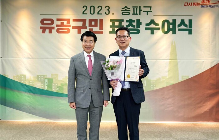 송파구는 매월 지역사회 발전에 힘쓰며 지속적으로 봉사하는 구민을 선정해 '송파구 유공구민 표창 수여식'을 통해 표창을 진행하고 있다. 지난 25일, 송파구청에서 진행된 수여식에서 서강석 송파구청장은 올떡 김형욱 대표에게 표창장을 전달하며 감사의 마음을 전했다.
