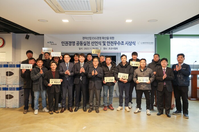 한국마사회는 지난 29일 서울경마장조교사협회와 ‘인권경영 공동실천 선언’과 ‘안전 우수 조 안전물품 전달식’ 행사를 진행했다고 30일 밝혔다.