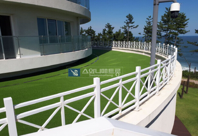 스와니매트롱 인조잔디가 인테리어 효과와 미끄럼 사고 예방까지 제공한다고 밝혔다.
