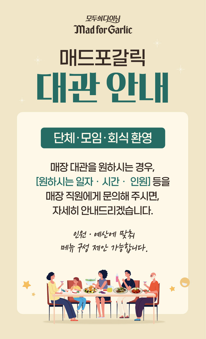 최근 매장별 대관 문의가 꾸준히 증가함에 따라, 매드포갈릭은 기존 일부 매장에서 운영하던 대관 서비스를 연말 시즌을 기점으로 전국 매장으로 확대한다는 계획이다.