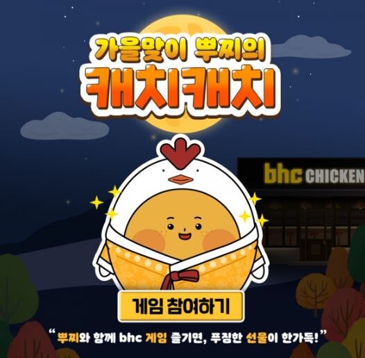 bhc치킨이 한가위를 맞아 오는 9월 28일까지 자사의 뿌찌가 등장하는 미니 게임 ‘가을맞이 뿌찌의 캐치캐치’를 선보인다고 8일 밝혔다.