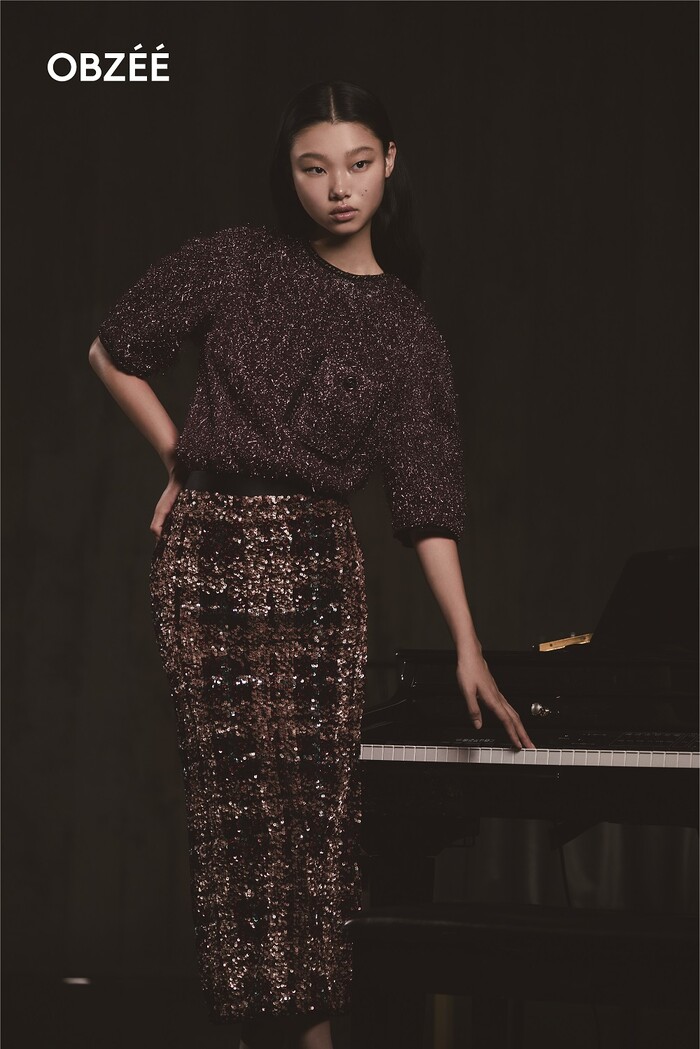S/S 시즌에 이어 이번 가을 겨울 시즌에도 오브제 전속 모델로 기용된 모델 배윤영은 파리 마레지구의 쿨한 재즈 클럽이 연상되는 공간에서 전형적이지 않은 유연하고 당당한 워킹으로 연주와 음악을 춤추듯 즐기는 오브제 우먼의 무드를 표현했다.