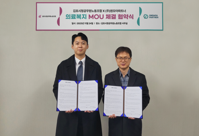 ㈜원모아파트너는 최근 김포시청공무원노동조합과 의료복지 서비스 제공 업무협약(MOU)을 체결했다고 밝혔다.