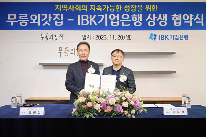 IBK기업은행이 무릉외갓집 영농조합법인과 '지역사회의 지속가능한 성장을 위한 상생협약'을 체결했다고 21일 밝혔다.