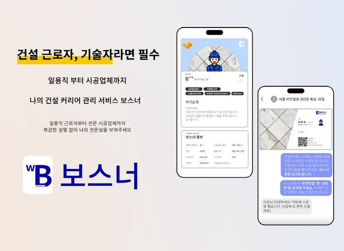 우리집 관계자는 “건설현장에서 근무하며 커리어를 관리하고 증명하기 어려웠던 근로자, 기술자들을 위해 보스너를 개발하게 됐다”며 “고용 불안정, 일용직 근무로 인한 커리어 관리가 어려웠던 분이시라면 보스너의 프로필, 명함 등으로 자신을 증명하면서 한 명의 전문가로 대우를 받으며 일을 하실 수 있길 바란다”