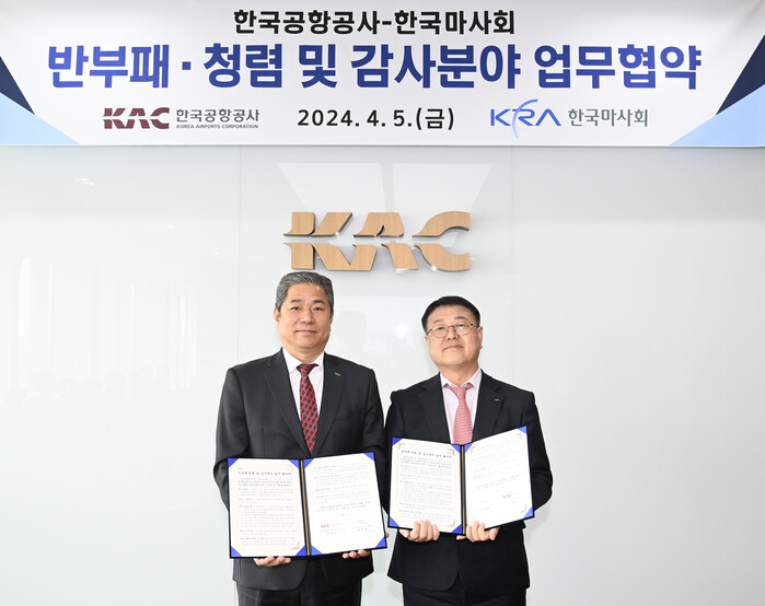 [매일안전신문=김진섭 기자]한국마사회가 한국공항공사와 반부패·청렴, 감사업무 역량 강화를 위해 손을 맞잡았다.