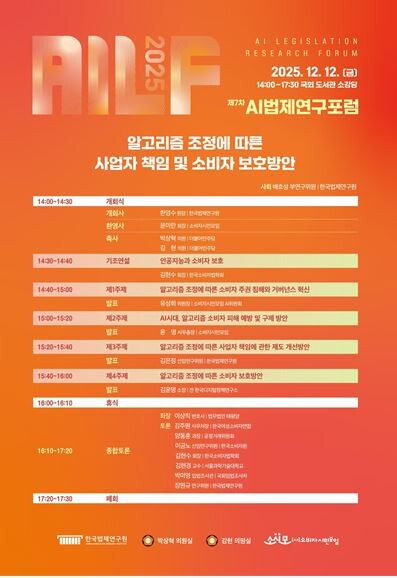 한영수 한국법제연구원장은 “알고리즘 조정은 AI 시대의 핵심 화두”라며 “기술 혁신을 저해하지 않으면서도 소비자의 권리와 안전을 충실히 보호 할 수 있는 법·제도적 기반을 마련하는 것이 우리에게 주어진 과제”라고 강조했다. 이어 “이번 포럼에서 입법과 정책에 실질적으로 기여할 수 있는 구체적 대안이 마련되기를 기대한다”고 전했다.