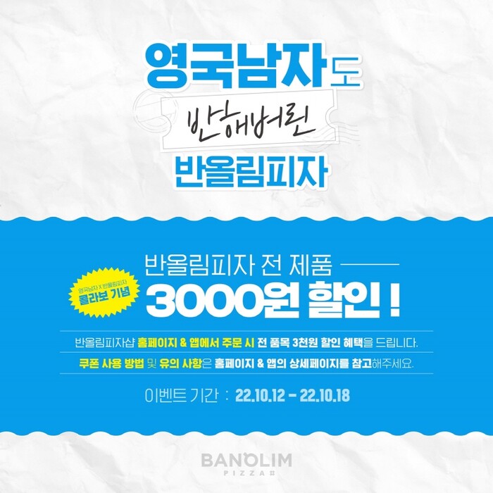 반올림피자샵은 이번 ‘영국남자’ 채널과의 협업을 기념해 할인 프로모션을 진행한다고 밝혔다.