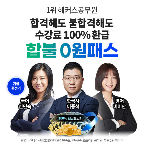 현재 ‘합불 0원 패스’는 겨울 한정 가격으로 판매되고 있으며, 관련 자세한 사항은 해커스공무원 사이트에서 확인할 수 있다.
