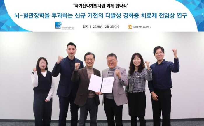 [매일안전신문=김진섭 기자] 대웅제약이 개발 중인 신경 염증성 자가면역질환 치료제 신약 후보 물질이 국가 신약 개발 사업단이 주관하는 ‘2025년도 제2차 국가 신약 개발사업 신규 지원 대상 과제’로 최종 선정됐다.