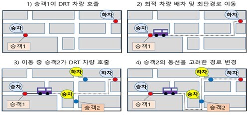 수요응답형 교통은 노선이 고정된 노선버스와 달리 이용자의 호출에 따라 차량을 배차하고 최적 경로로 운행하는 교통서비스다.