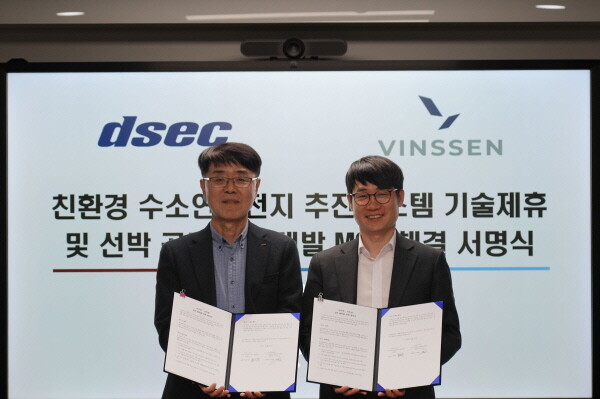 ㈜빈센과 ㈜디섹은 지난 달 27일 부산광역시 중구에 위치한 ㈜디섹 본사에서 진행된 MOU 체결식에서 친환경 수소연료전지 추진 시스템 기술 제휴 및 선박 공동연구개발을 위해 우호적 협력을 약속했다고 밝혔다.