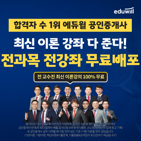 ‘최신 이론 전 인강 무료 제공’의 더 자세한 내용은 에듀윌 공인중개사 홈페이지에서 확인할 수 있다.