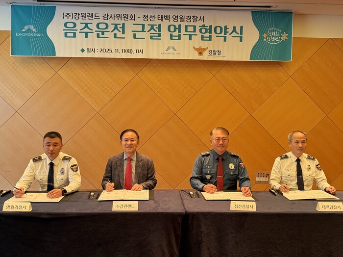 이번 협약을 통해 강원랜드와 정선·태백·영월 경찰서는 임직원과 고객을 대상으로 하는 음주운전 근절 캠페인 전개, 전 직원 대상 예방 교육 실시, 지역사회 내 음주운전 경각심 제고 등 다양한 공동 활동을 추진할 예정이다.