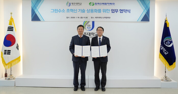 [매일안전신문=김진섭 기자] 한국수력원자력이 제주대학교와 제주 그린수소 기술혁신을 위한 산·학 협력체계를 구축했다.