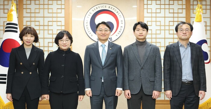 | ▲2025년 우수 국선대리인 감사패 수여식. 왼쪽부터 이광숙 납세자보호관, 최수진 변호사, 임광현 국세청장, 오관열 세무사, 김병욱 회계사 (사진=국세청 제공) |