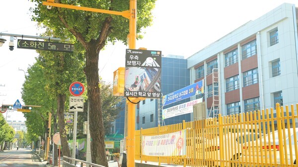 | ▲현대백화점그룹이 광주광역시 북구 서림초등학교 앞 교통사각지대에 설치한 스마트 교통안전 솔루션인 ‘스마트 아이(Smart Eye)’ 모습 (사진=현대백화점그룹 제공) |