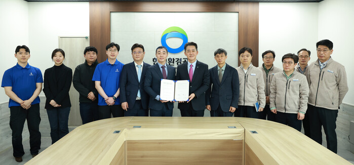 | ▲한국환경공단이 수퍼빈과 고품질 재생원료 생산 확대를 위한 MOU를 체결하고 기념촬영을 하고 있다. (사진=한국환경공단 제공) |