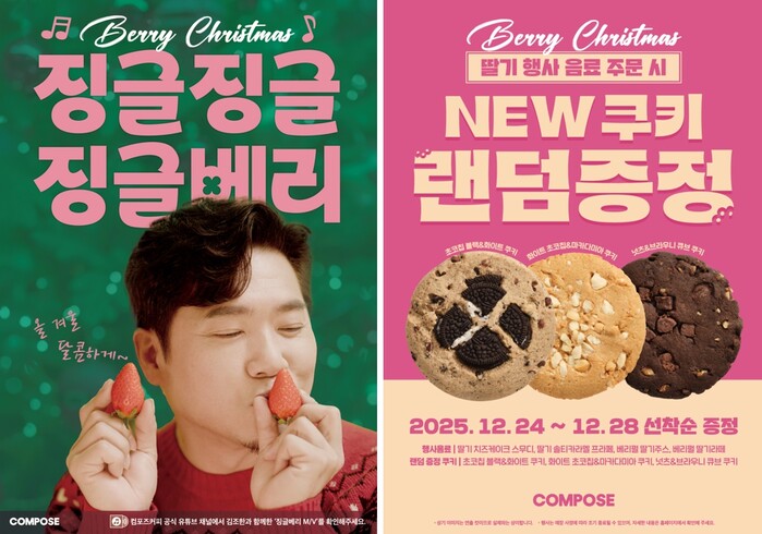 신메뉴 출시를 기념해 제작된 캐럴송 '징글베리'는 가수 김조한과 작곡가 김형석이 참여해 완성도를 높였다. 컴포즈커피 공식 유튜브 채널을 통해 공개된 뮤직비디오에는 김조한과 김형석이 직접 출연해 크리스마스 특유의 따뜻함과 설렘을 담아냈다. 유쾌한 무드 속에서 딸기 신메뉴의 상큼한 이미지를 자연스럽게 녹여내며, 보는 이들에게 효과적으로 크리스마스 감성과 딸기 신메뉴의 매력을 전달했다는 평가를 받고 있다.