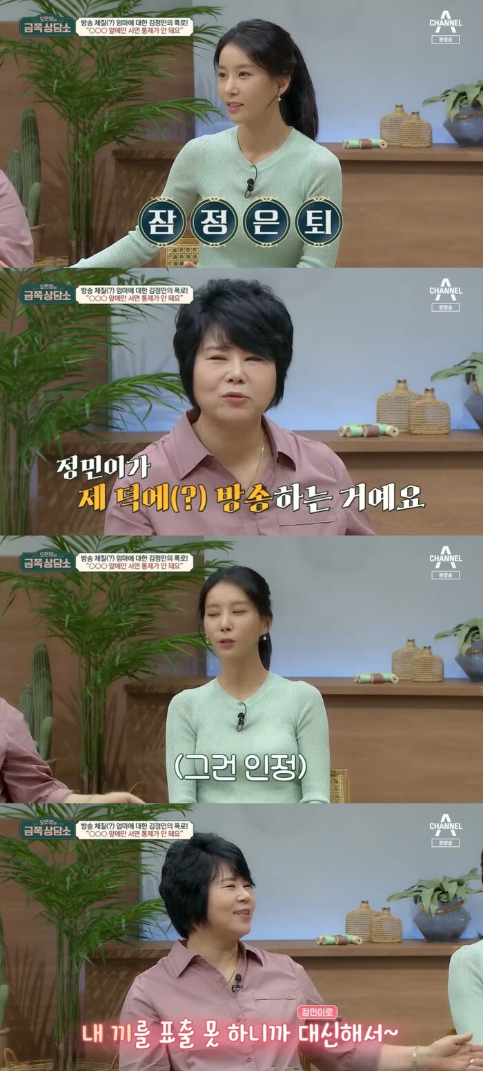 또 엄마 허귀례의 태도에서 독특한 특성을 발견하기도 하는데 김정민의 잔소리를 지나치게 '과순응'하는 모습을 꼬집은 것이다. 이와함께 충격적인 김정민 네 가정사가 밝혀졌다.