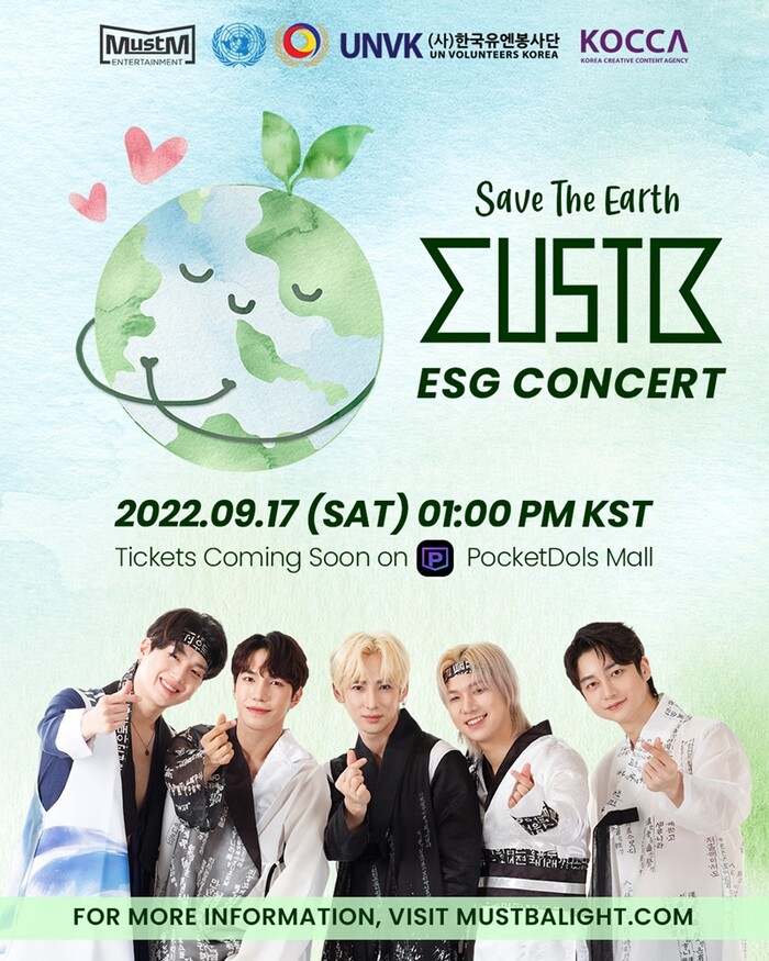 소속사 머스트엠엔터테인먼트에 따르면 머스트비가 오는 9월 17일 온라인 비대면 ESG 콘서트 ‘ㅈㄱㄹㅈㅋㄹ(지구를 지켜라, Save The Earth)’를 개최한다.