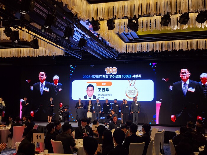 한국건설기술연구원은 30일 포시즌스 호텔 서울 그랜드볼룸에서 열린 ‘2025 국가연구개발 우수성과 100선 시상식’에 참석했다고 밝혔다.