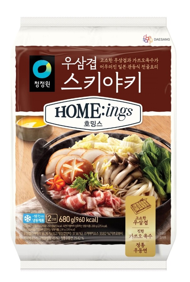 쌀쌀한 날씨에 외식보다 집에서 간편하게 즐기길 원하는 소비자들에게는 대상 청정원의 간편식 전문 브랜드 호밍스의 ‘우삼겹스키야키’가 좋다. 간편식답게 별도의 해동 과정 없이 고기부터 채소, 양념, 우동면 등 모든 재료를 냄비에 넣고 10분간 조리하면 집에서도 일본 대표요리 중 하나인 스키야키 전골의 맛을 제대로 느낄 수 있는 제품으로 달콤한 간장 베이스에 말린 가다랑어를 진하게 우려낸 육수로 일식 특유의 감칠맛을 살렸다. 여기에 우삼겹을 더해 고소한 맛이 일품으로 청경채와 배추, 숙주, 느타리버섯, 표고버섯 등 풍성한 채소도 함께 즐길 수 있다.