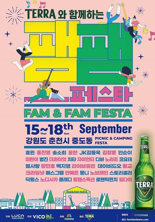 한편 올해 첫 개최되는 2022춘천 팸팸페스타는 시원한 테라 맥주와 다채로운 먹거리, 자이언티, 코요태, 백지영, 장민호 등 유명 가수의 공연이 펼쳐진다.