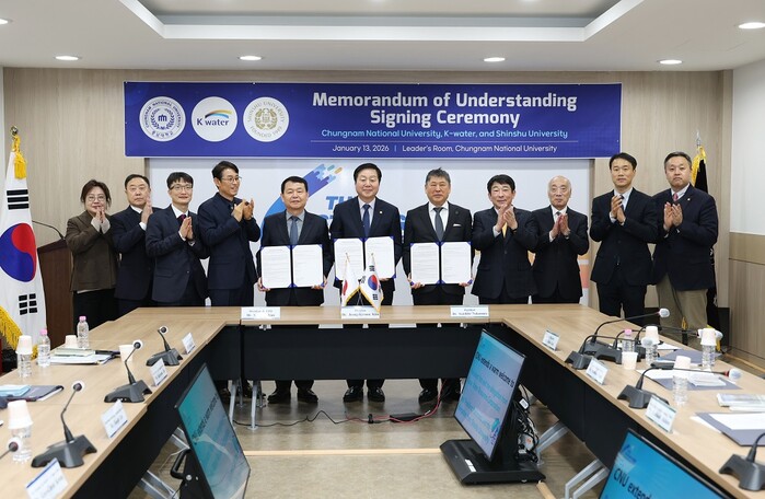 이날 협약식에는 윤석대 한국수자원공사 사장, 김정겸 충남대학교 총장, 나카무라 소이치로 일본 신슈대학교 총장을 비롯한 주요 관계자들이 참석했다. 이번 협약은 기후위기 대응을 위해 첨단수처리와 물·에너지 융합 분야 등에 걸쳐 국제 공동 연구와 인재 교류를 본격화하고자 마련됐다.