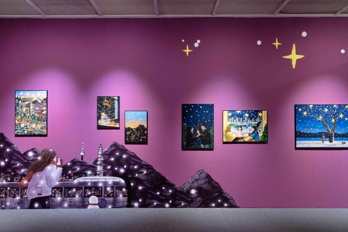'한겨울의 크리스마스'가 주제이며 롯데백화점을 배경으로 제작한 단독 협업 작품 8점도 처음으로 선보인다.