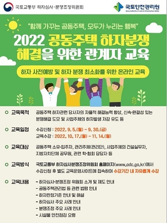| ▲ ‘공동주택 하자분쟁 해결을 위한 관계자 온라인 교육’ 포스터 (사진, 국토안전관리원 제공) |