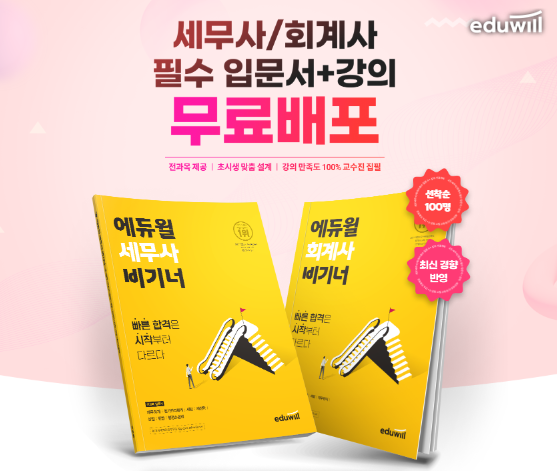 ‘필수 입문서 및 강의’는 에듀윌 세무사·회계사 신규회원이라면 누구나 신청할 수 있고, 매일 100명에게 선착순 제공한다.