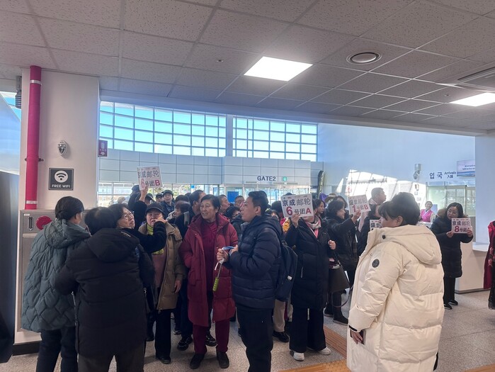 | ▲인천항 크루즈터미널에서 중국 여행객들이 각 팀별로 집결하고 있다 (사진=인천항만공사 제공) |
