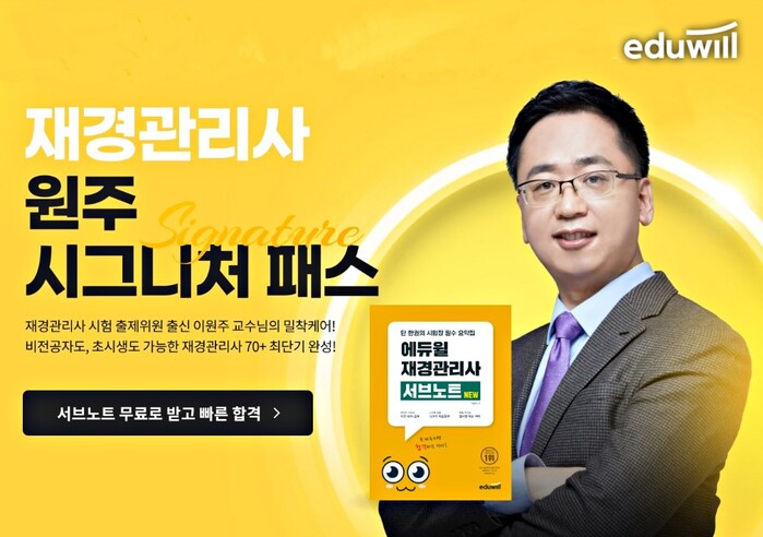 에듀윌은 재경관리사 ‘원주 시그니처 패스’를 운영하고, ‘서브노트’를 무료 증정한다고 30일 밝혔다.