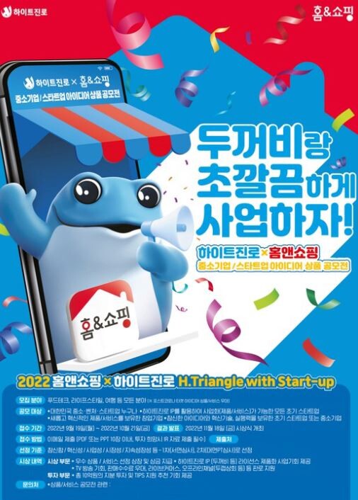 한편 ‘우수 아이디어 상품·서비스’에 선발된 기업은 상금과 함께 하이트진로의 대표 캐릭터인 ‘두꺼비’를 활용한 라이선스 제품화와 ‘홈앤쇼핑’ 방송 기회 부여, 라이브 커머스 판매 지원 등 다양한 혜택도 함께 제공할 방침이다.