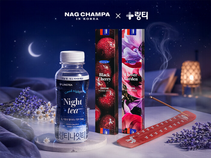 [매일안전신문=이정자 기자] 인센스 브랜드 나그참파코리아가 수분 보충 음료 브랜드 링티의 ‘나잇티’와 함께 휴식 솔루션을 제안한다.