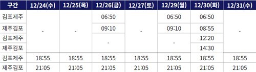또 30일은 김포발 오전 6시 50분·제주발 오전 8시 55분, 김포발 낮 12시 20분·제주발 오후 2시 30분 항공편도 추가 운영된다.