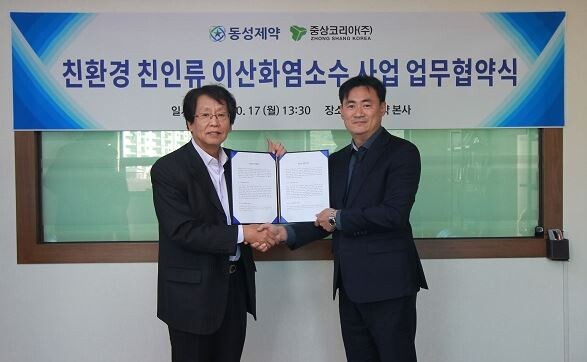 동성제약은 지난18일 중상코리아와 ‘친환경·친인류 이산화염소수 사업’ 추진 업무협약(MOU)을 체결했다고 밝혔다.