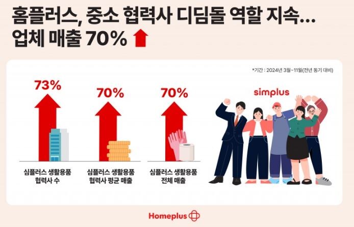 올해 3월부터 11월까지 홈플러스와 협력 중인 중소기업 수는 전년 동기 대비 73% 증가했으며, 이들 업체의 평균 매출도 약 70% 상승했다. 신규 협력사의 유입을 돕기 위해 도입한 입점 상담 시스템 ‘조인어스 파트너스’와 PB 상품 해외 수출 지원 등이 이 같은 성과의 기반이 됐다. 또한, ‘반값가전’은 협력사를 통해 수십억 원의 매출을 창출하며 협력 구조를 강화했다.