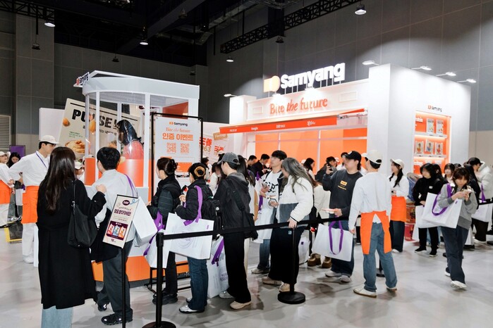 삼양식품 부스는 ‘Bite the Future’ 콘셉트 아래 펄스랩, 탱글, 삼양1963, 불닭소스 등 차세대 브랜드의 다채로운 미식 경험을 제공하는 데 주력했다. 행사 첫날인 18일에는 평일임에도 불구하고 오전부터 시식을 기다리는 대기 행렬이 이어졌으며, 주말에는 더욱 많은 인파가 몰리며 준비한 시식 물량이 조기 소진되는 등 높은 관심을 입증했다. 삼양식품은 현장의 뜨거운 반응에 발맞춰 추가 물량을 긴급 투입하는 등 방문객 응대에 만전을 기했다.