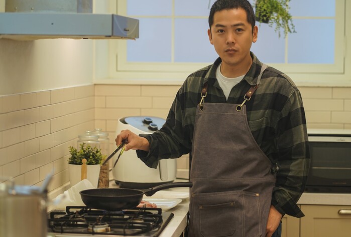 | ▲팬들을 위해 직접고기를 굽고있는 가수 김용진 모습 (사진=레벨나인컴퍼니) |