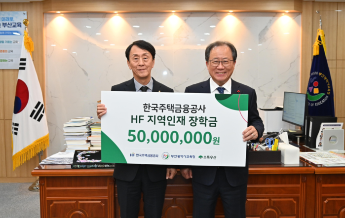 한국주택금융공사가 16일 부산시 부산진구에 있는 부산광역시교육청에서 ‘HF 지역인재 장학금’ 전달식을 가졌다고 17일 밝혔다.
