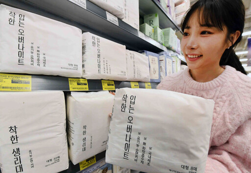 이에 힘입어 홈플러스는 착한 시리즈 4탄으로 '착한 유기농 입는 오버나이트 팬티형' 2종을 출시하고, 3탄 '착한 생리대'에 이어 또 한 번 라인업을 확대한다. 입는 팬티형 생리대 제품에 대한 고객 수요가 지속 증가하는 추세를 반영해 이번 신상품을 선보이게 됐다.