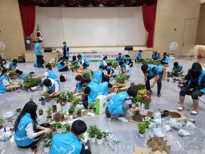 이번 캠페인은 24가족 70명의 봉사단이 참여했으며 재활용품을 준비하고 공기 정화 식물을 심어 업사이클링 화분을 만드는 환경개선 활동을 벌였다.