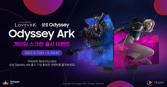 [매일안전신문=박서경 기자] 삼성의 게이밍 브랜드, 삼성 오디세이(Samsung Odyssey)와 로스트아크의 개발사인 스마일게이트에서 로스트아크를 즐기는 게이머들을 위해 준비한 'Odyssey Ark 게이밍 모니터 출시 이벤트'를 공개했다.