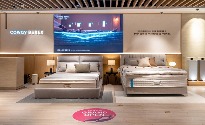 코웨이갤러리 현대 천호점은 강동점에 이어 서울 강동 지역에 선보이는 두 번째 오프라인 매장으로, 슬립·힐링케어 브랜드 '비렉스(BEREX)'의 침대·안마의자·의료기기와 정수기·공기청정기 등 다양한 제품을 비교·체험할 수 있도록 구성됐다.